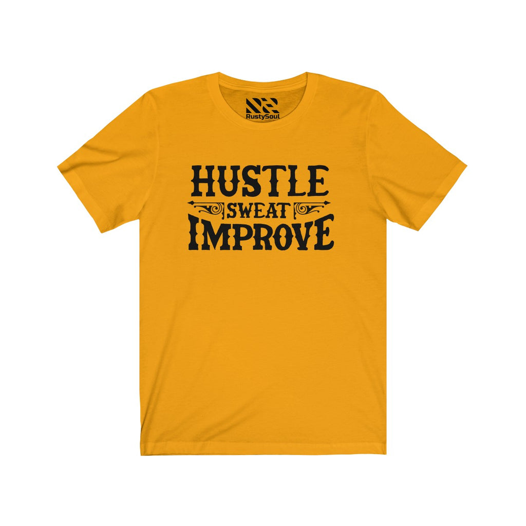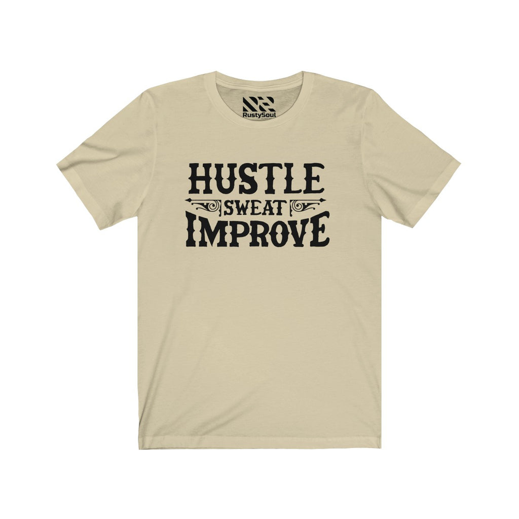 "Hustle Sweat Improve" (Black) Unisex Jersey Short Sleeve Tee